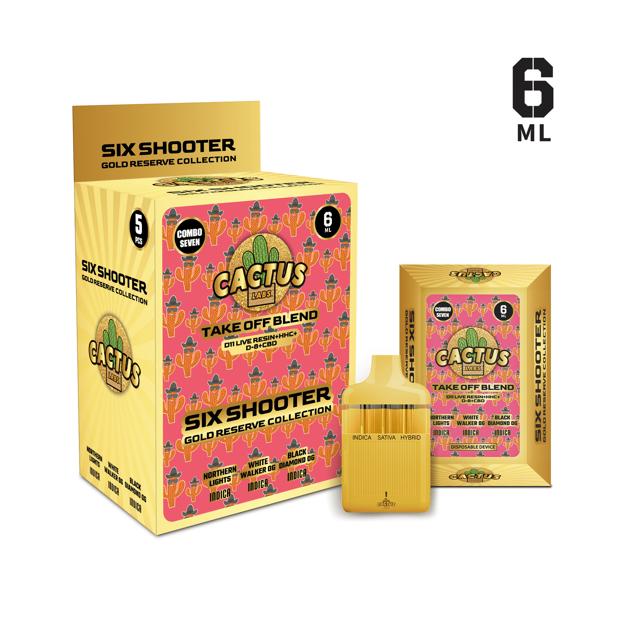 Six Shooter Take Off Blend Gold Reserve Northern Lights + White Walker OG + Black Diamond OG (Indica + Indica + Indica)