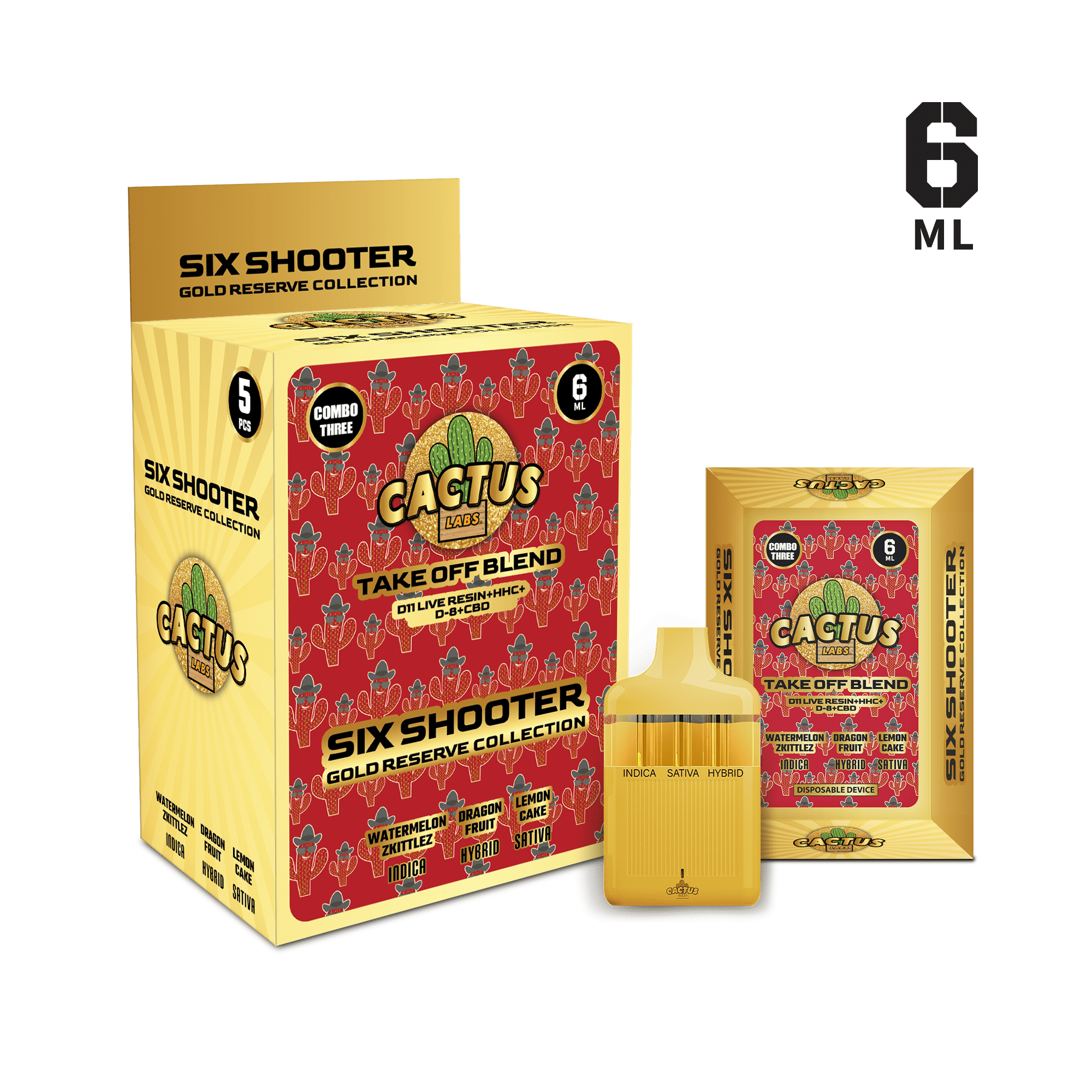 Six Shooter Take Off Blend Gold Reserve Watermelon Zkittlez + Dragon Fruit + Lemon Cake (Indica + Hybrid + Sativa)